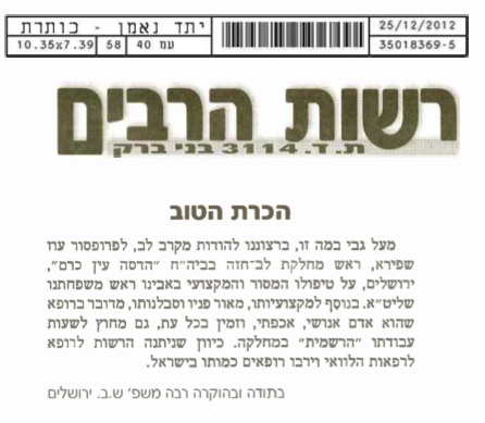 Professor and Director, Cardiothoracic Surgery, Hadassah, Jerusalem, Israel